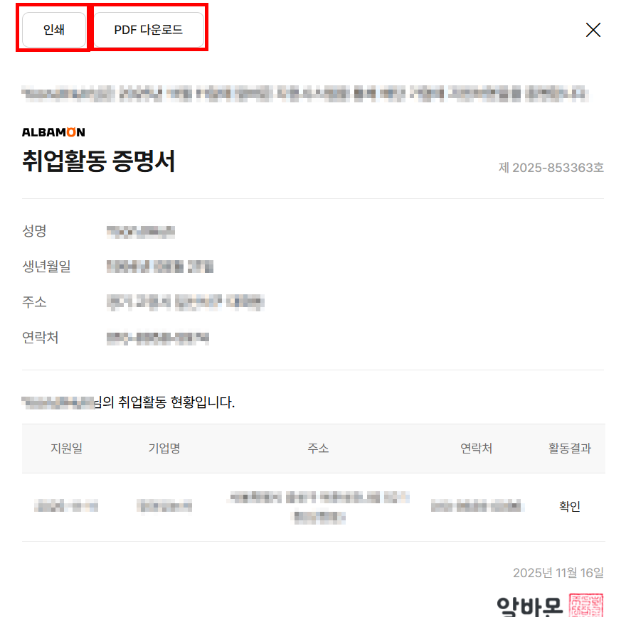 3. 알바몬 취업활동증명서 발급 방법(PDF)