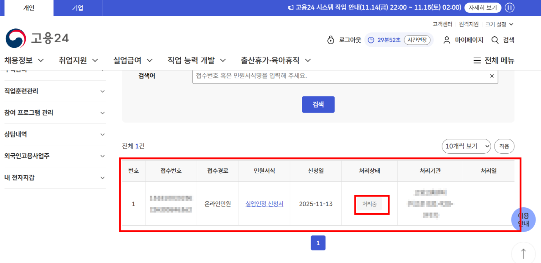 [고용노동부 민원접수 안내]