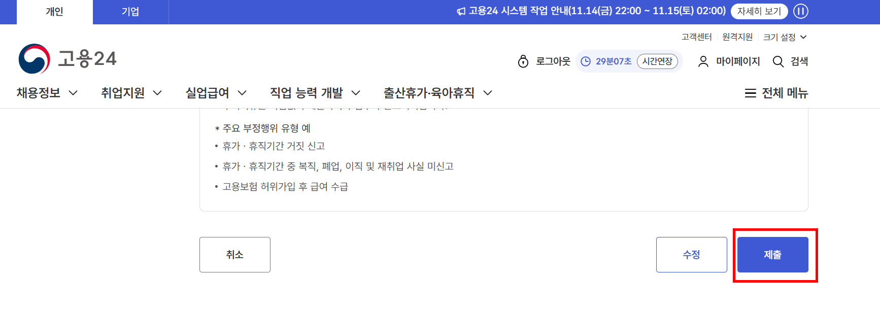 특히 구직활동 입력, 증빙자료 첨부, 제출 버튼 누락 등은 실제로 많은 분들이 실수하는 부분입니다.