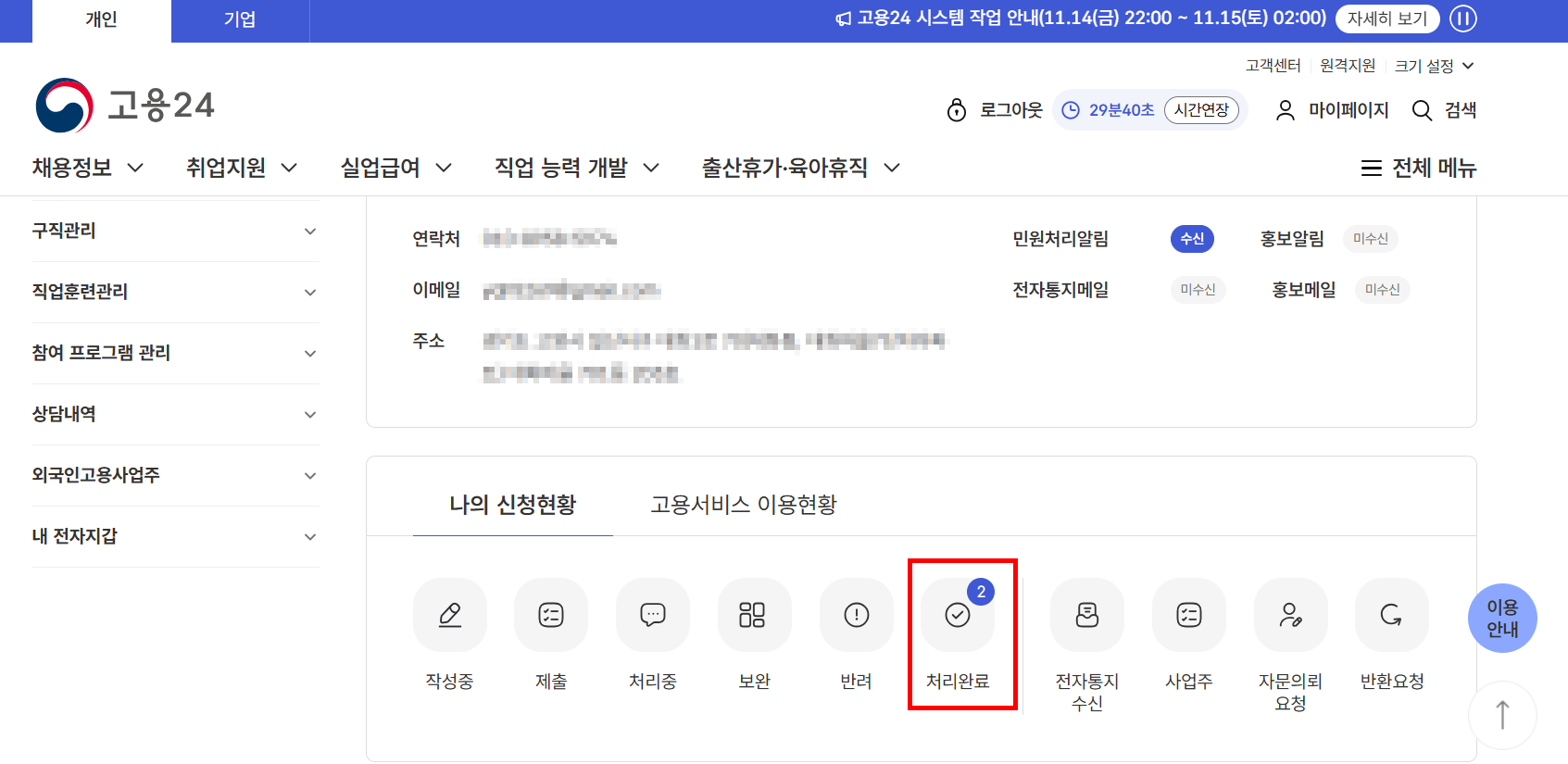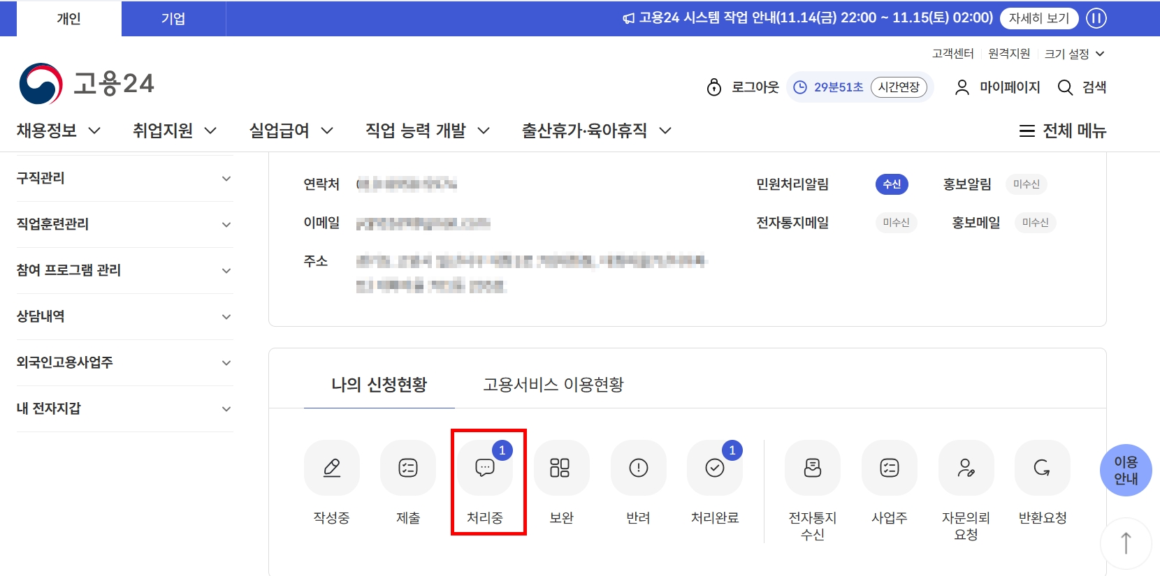 22: 실업급여 지급 예정 금액 확인