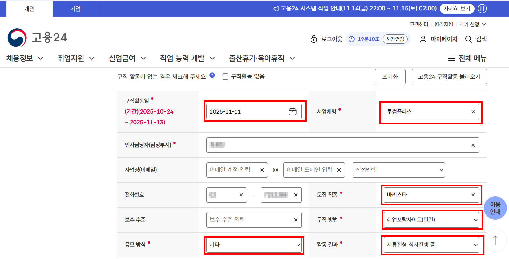 13: 추가 구직활동 입력