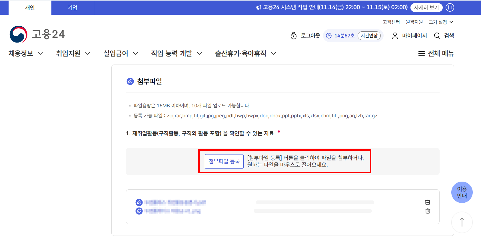10: 구직활동 증빙자료 업로드