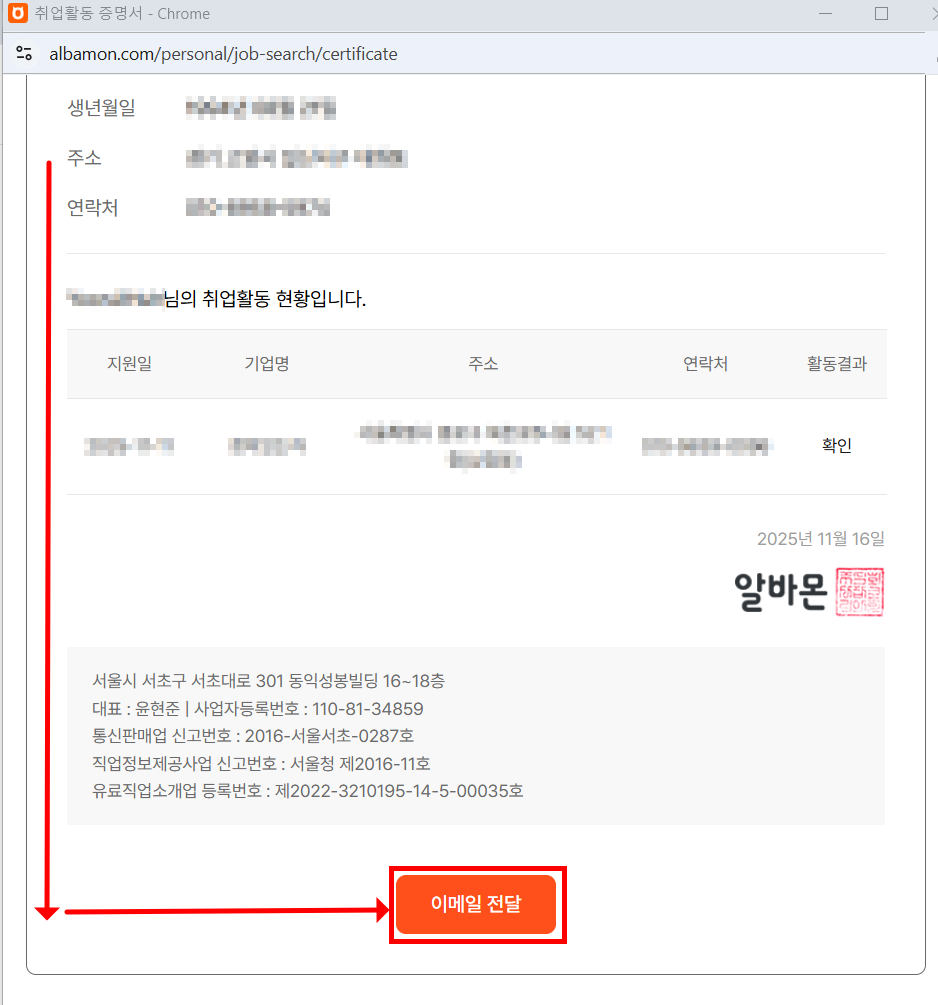 3. 알바몬 취업활동증명서 발급 방법(PDF)