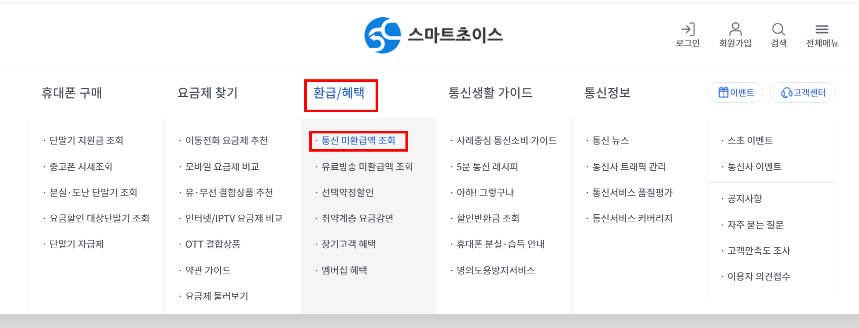 통신 미환금액 조회는 반드시 스마트초이스 공식 사이트에서만 하세요.